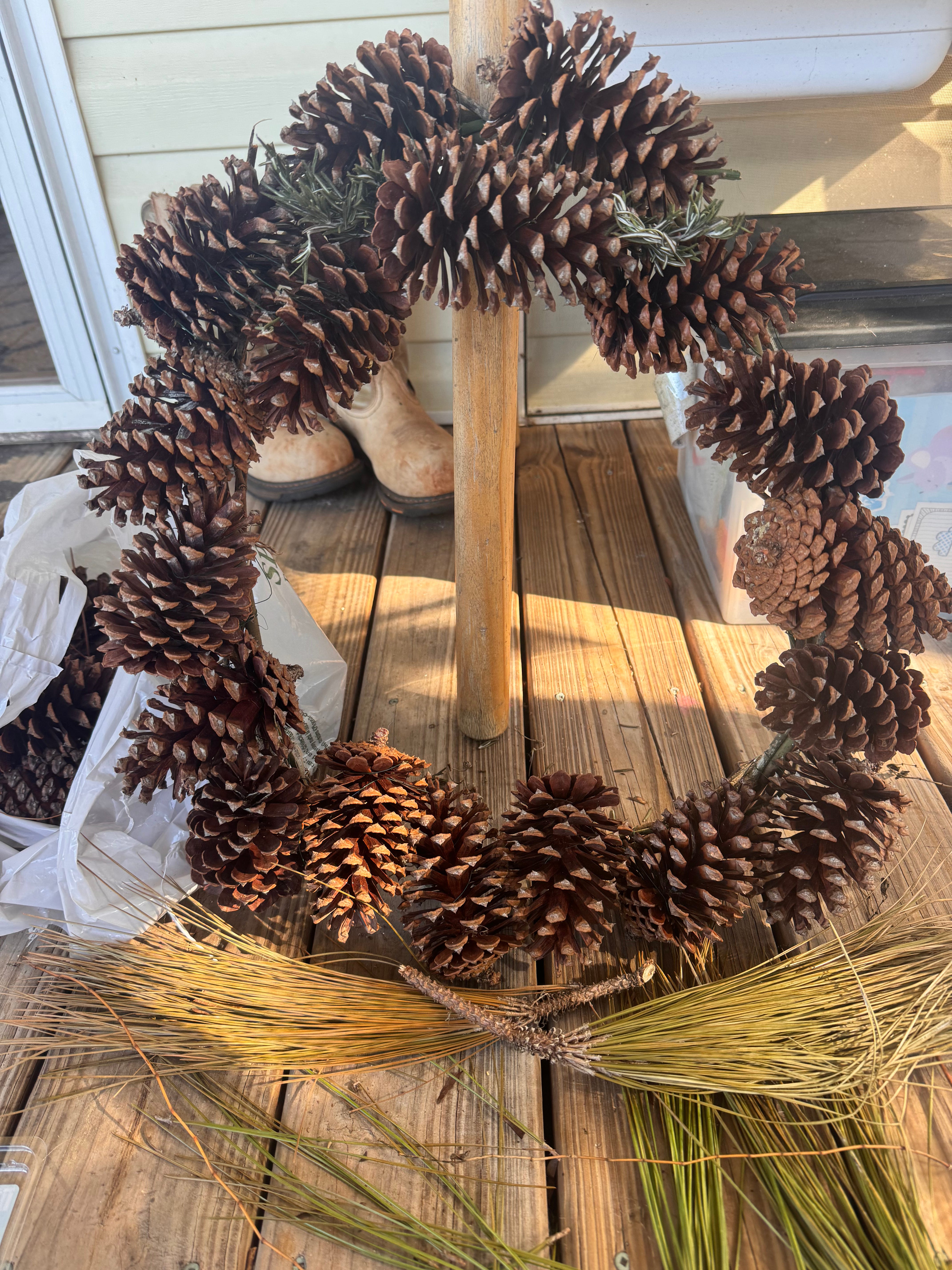 I think we do things a lot based on intuition and instinct and divine timing, we just don’t notice or try to understand. I looked up the symbolism of wreath making, pinecones, and rosemary. This is what I found, and I think it ties in purposefully to brining in a new year and giving our love to our Rollo: